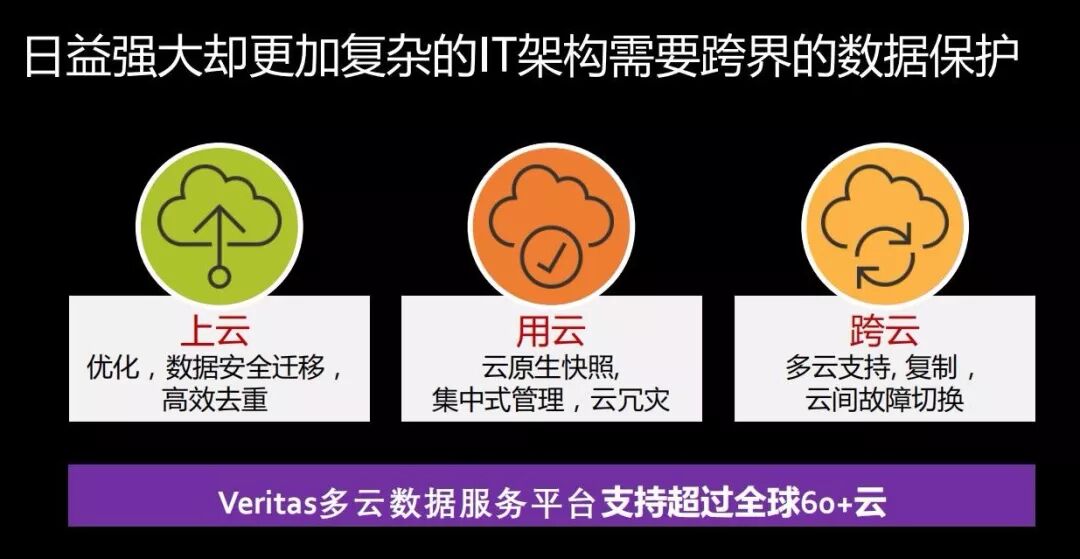 多年的技术和实践积累对于Veritas来说,其实是更好起跳的踏板。为什么这么说?数字化转型的本质就是关注信息本身,提升企业创新和响应的能力;以数据为核心,打破原有系统及组织之间的壁垒,实现便捷的数据采集、访问、分析和决策;企业的决策与行为最终都是由数据驱动的。Veritas的业务一直围绕着数据和信息展开,旨在更好地实现数据的保护、管理,这与数字化转型的目标是一致的。今天的数字化转型反而让企业用户可以更好地认知和理解Veritas的价值所在。